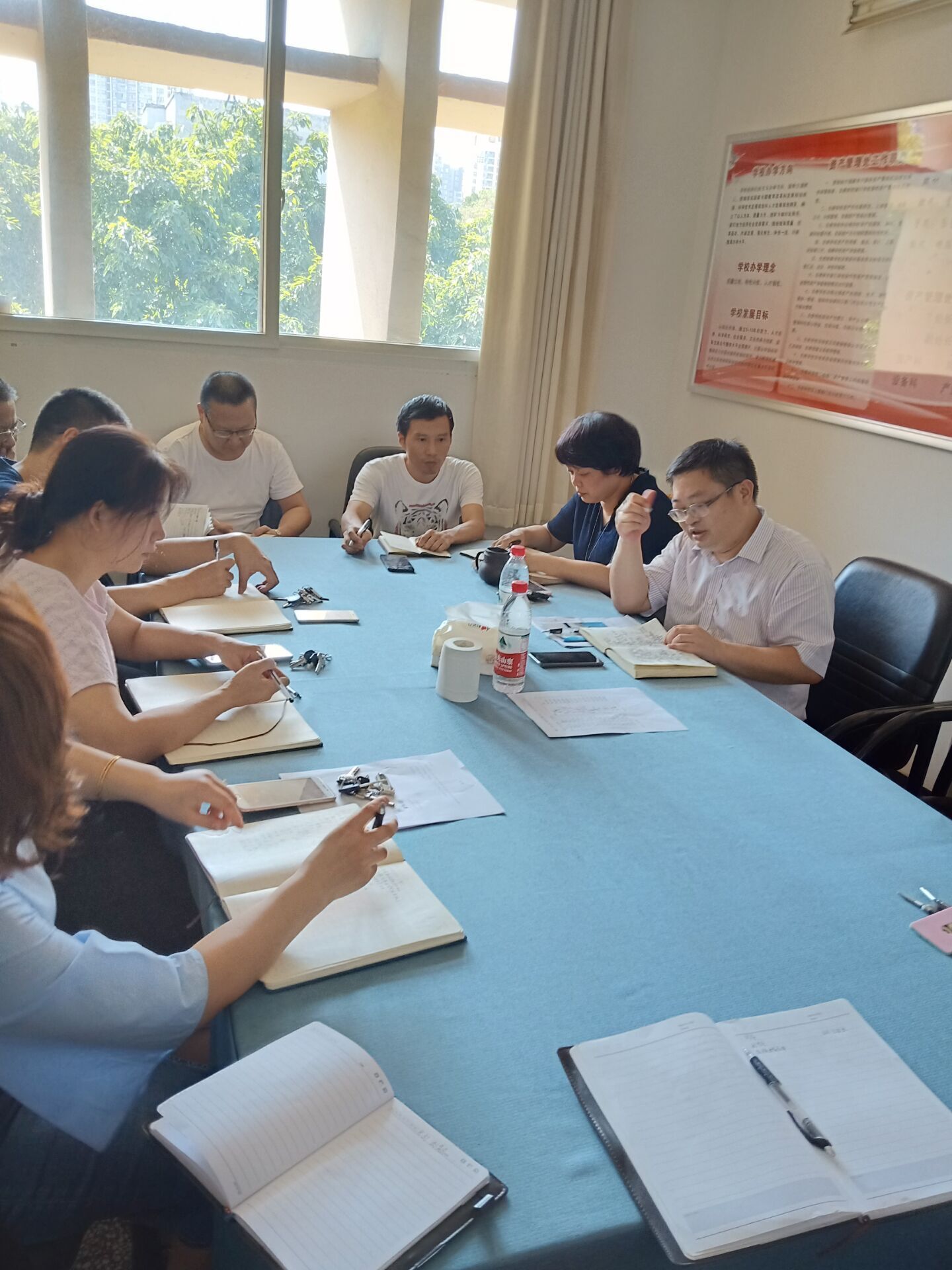 接着,刘强处长总结了暑假工作并布置了本学期重点工作。假期编制了资产处三年滚动预算,完成了校区功能调整、资产清查准备等工作。本学期重点工作有规章制度修订、全校资产清查、校办企业清理、住房货币化补贴、部分房改房办证、井口资产处置等。