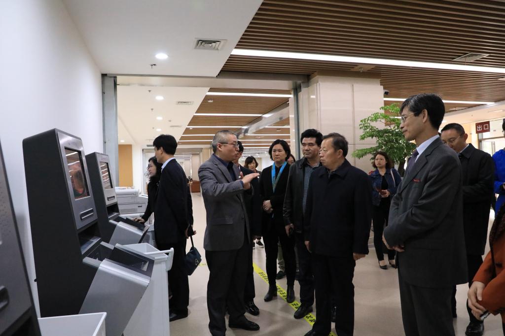 调研组一行走访视察了新图书馆,图书馆副馆长戴林讲解了图书馆的管理运行情况。在新图书馆北大厅,调研组体验了使用自助借还机的便捷;在北区五楼,他们参观了经济管理阅览二区和古籍书库,琳琅满目而又散发浓郁书香味的古籍,引得来宾啧啧称赞,他们或驻足翻阅,或拍照留念;在南五楼研修区,看到研修区舒适的学习环境,调研组纷纷点赞;在图书馆一楼,看到座无虚席的自修大厅,调研组亲切慰问正认真学习的同学,了解他们的学习情况。在戴林副馆长的引领下,调研组还参观了馆内翠湖博士论坛、翠湖书吧、视听阅览室、创新服务体验区等。