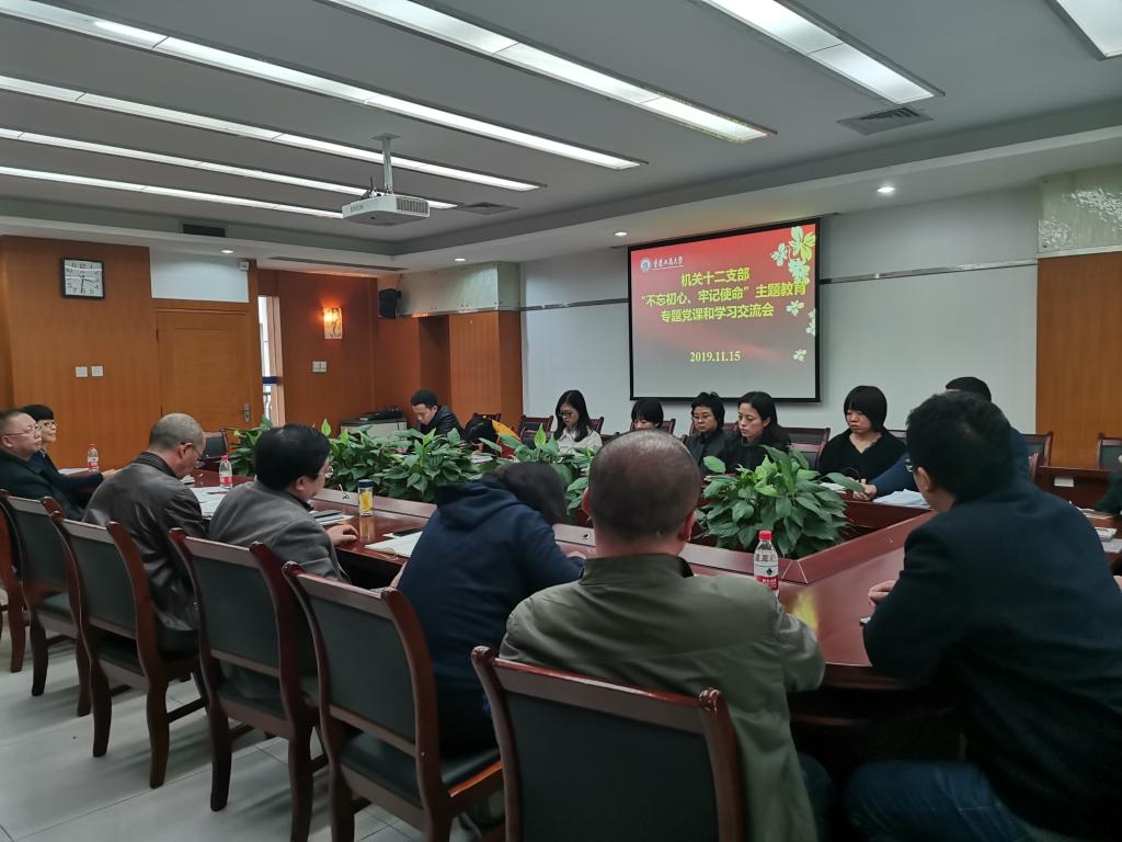 11月15日下午,机关十二支部在厚德楼3020会议室开展“不忘初心、牢记使命” 主题教育专题党课和学习交流会,会议由支部书记王燕主持,支部全体党员参加会议。学校主题教育巡回指导三组副组长杨维东出席会议并指导工作。