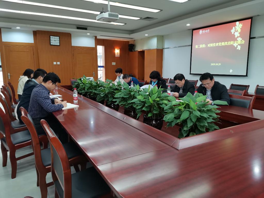 会议第二阶段,召开对照党章党规找差距专题会。在深入学习党章党规、《习近平新时代中国特色社会主义思想学习纲要》、《习近平关于“不忘初心、牢记使命”重要论述选编》等基础上,支部党员中层领导干部结合学习、调研等,围绕“18个是否”,以正视问题的自觉和刀刃向内的勇气,逐项逐条检视自身存在的问题,并对存在问题提出整改措施。学校巡回指导三组副组长杨维东在会上作了讲话。他指出,党员中层领导干部对标对表,坚持把自己摆进去、把工作摆进去、把职责摆进去,全面深刻地查找了自身存在的问题,达到了专题会预期目的。
