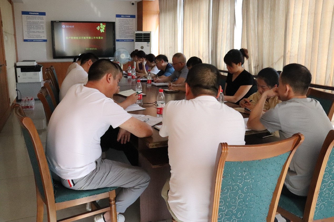 2021年9月3日下午,资产管理处在厚德楼8002会议室召开全处职工大会,刘强处长主持会议。