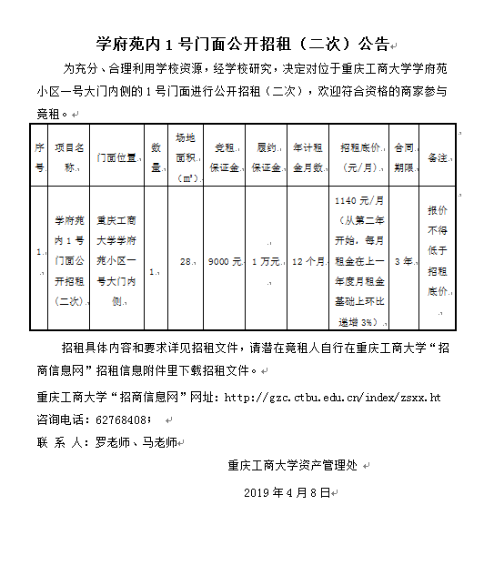 学府苑内1号门面公开招租(三次 )