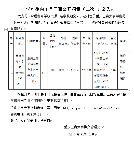 学府苑内1号门面公开招租(三次 )