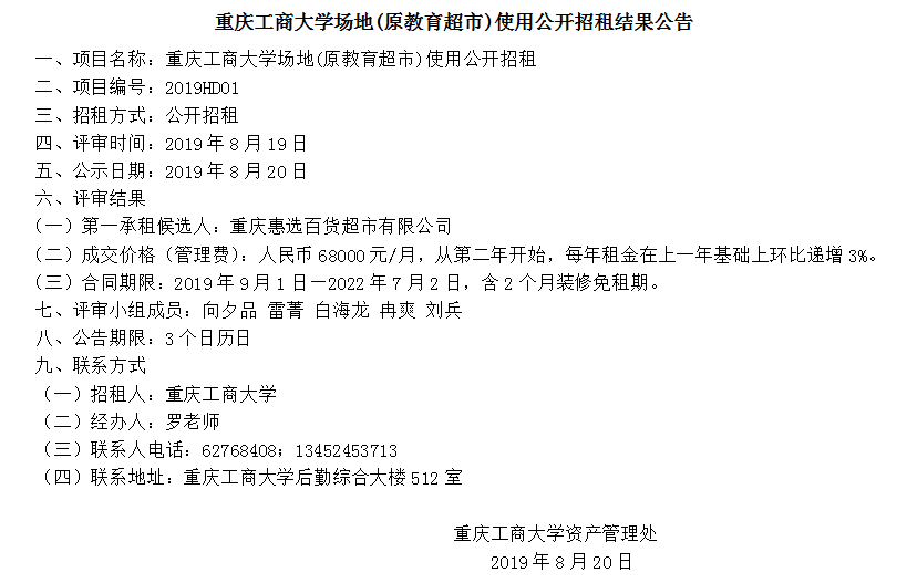 2003网站太阳集团场地(原教育超市)使用公开招租结果公告