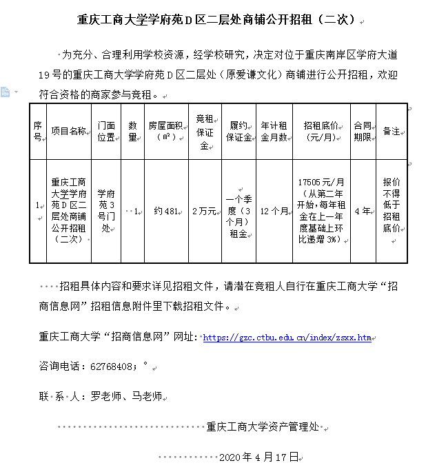 2003网站太阳集团学府苑D区二层处商铺公开招租(二次)