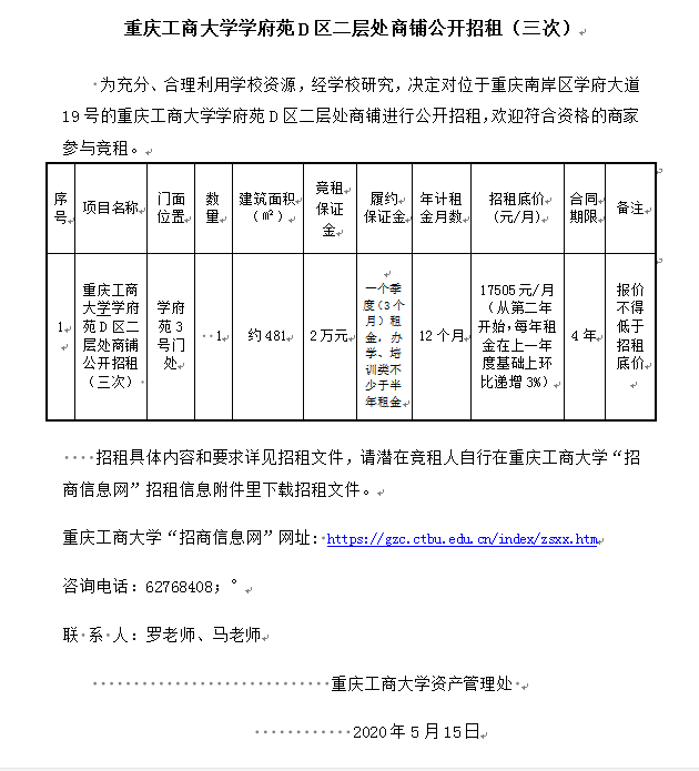 2003网站太阳集团学府苑D区二层处商铺公开招租(三次)