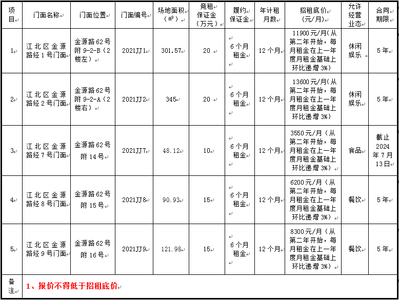 为充分、合理利用学校资源,经学校研究,决定对将2003网站太阳集团所属的位于重庆市江北区金源路的部分门面进行公开招租,欢迎符合资格的商家参与竞租。