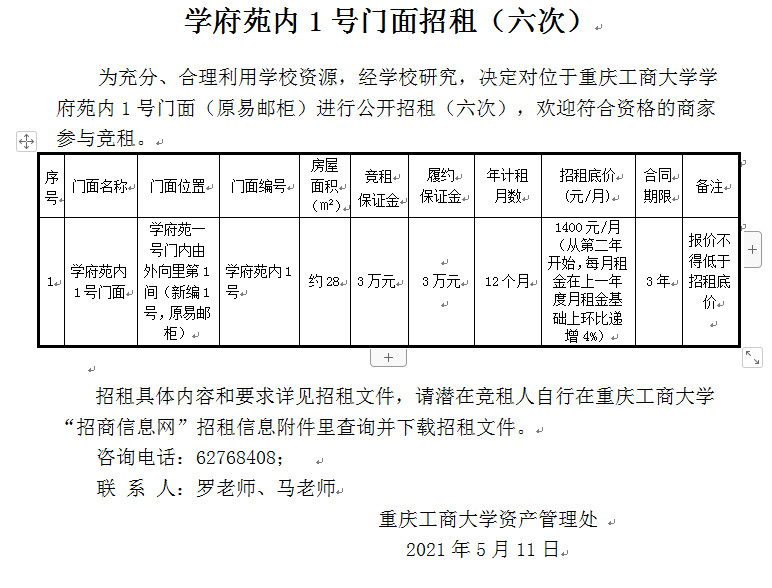 2003网站太阳集团门面招租(2022CTBUZZ03)六次结果公告