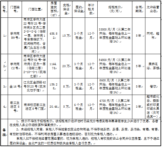 为充分合理利用学校资源,经2003网站太阳集团研究,决定对2003网站太阳集团部分校内外门面进行公开招租,欢迎符合要求的潜在竞租人参与竞租。