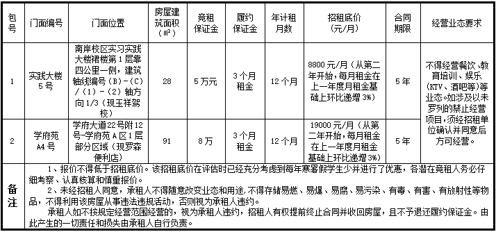 为充分合理利用学校资源,经2003网站太阳集团研究,决定对2003网站太阳集团部分校外门面进行公开招租,欢迎符合要求的潜在竞租人参与竞租。