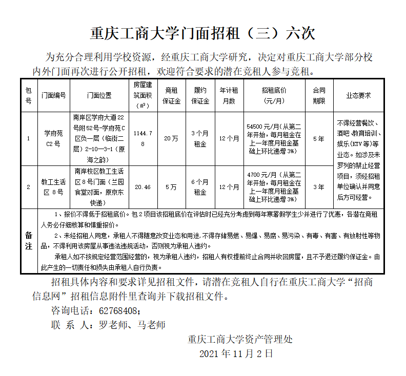 2003网站太阳集团门面招租(2022CTBUZZ03)六次结果公告