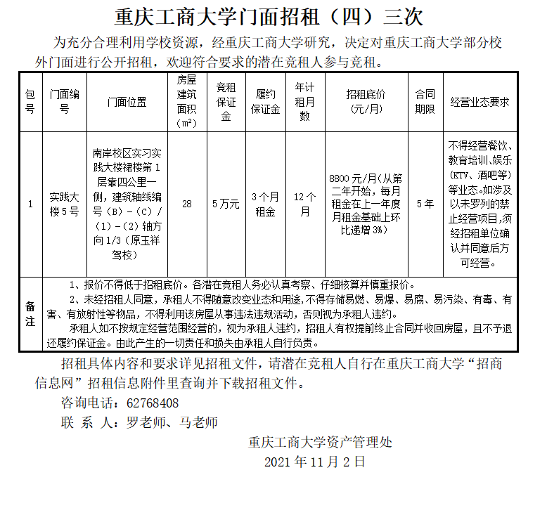 2003网站太阳集团门面招租(2022CTBUZZ03)六次结果公告