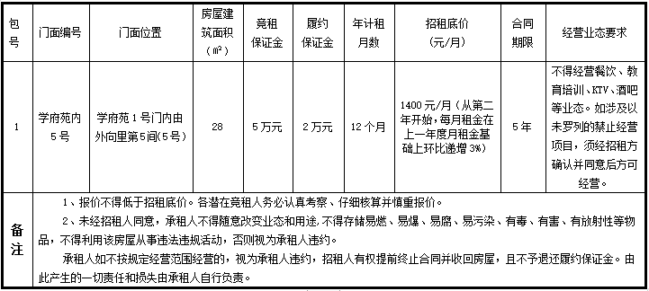 为充分合理利用学校资源,经2003网站太阳集团研究,决定对2003网站太阳集团部分门面进行公开招租,欢迎符合要求的潜在竞租人参与竞租。