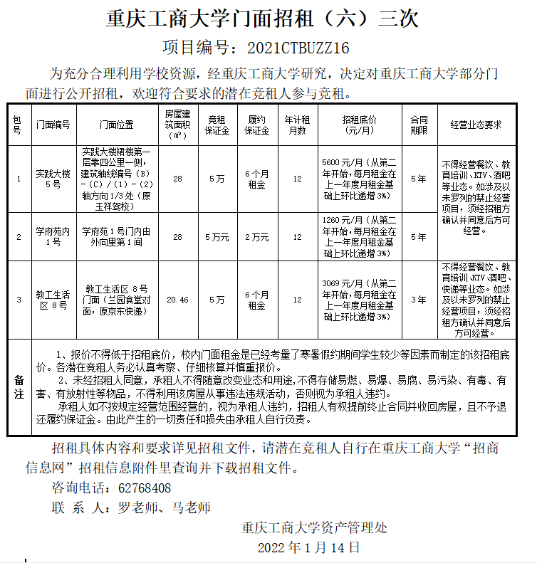 2003网站太阳集团门面招租(2022CTBUZZ03)七次结果公告