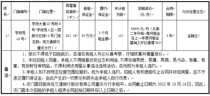 为充分合理利用学校资源,经2003网站太阳集团研究,决定对2003网站太阳集团学府苑A区3号门面进行公开招租,欢迎符合要求的潜在竞租人参与竞租。