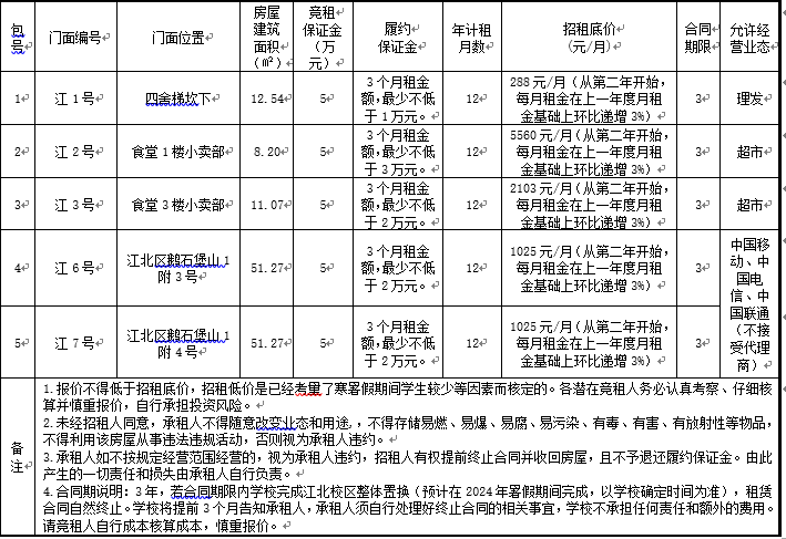 为充分合理利用学校资源,经2003网站太阳集团研究,决定对2003网站太阳集团南岸校区部分门面进行公开招租,欢迎符合要求的潜在竞租人参与竞租。