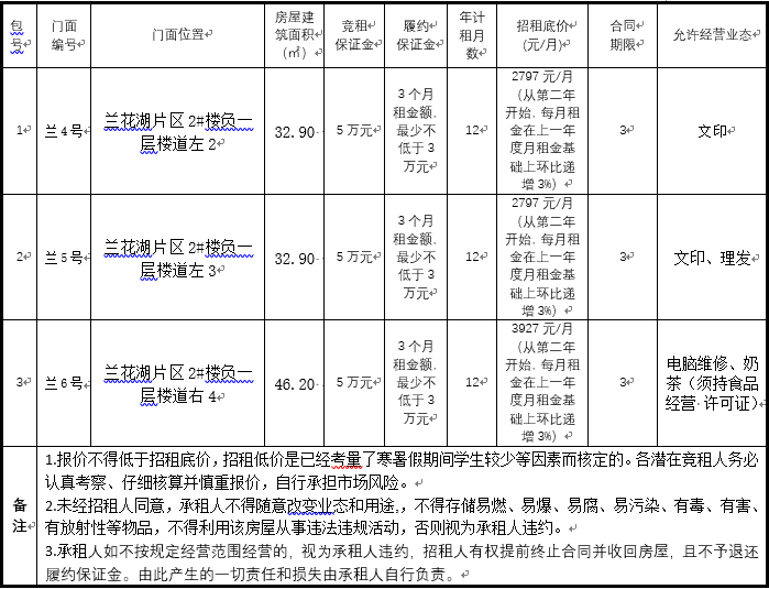 为充分合理利用学校资源,经2003网站太阳集团研究,决定对2003网站太阳集团兰花湖片区部分门面进行公开招租,欢迎符合要求的潜在竞租人参与竞租。