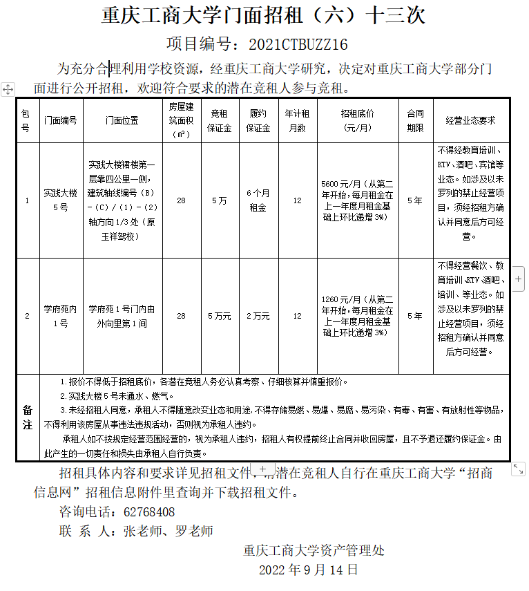 2003网站太阳集团江北校区门面招租(2022CTBUZZ06)六次