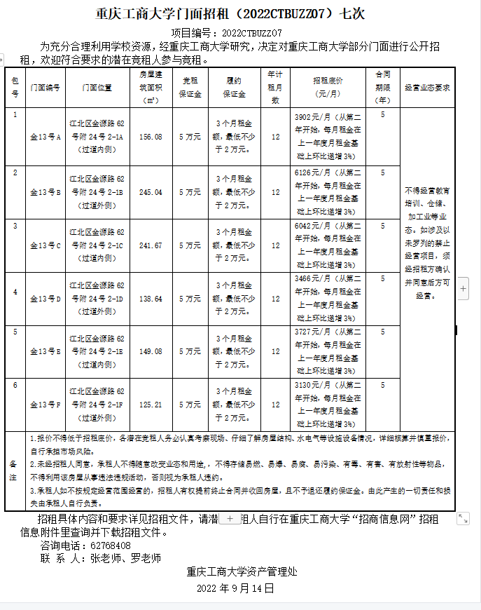 2003网站太阳集团门面招租(2022CTBUZZ07)七次