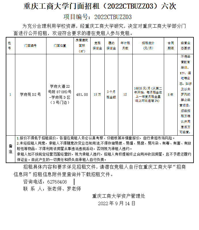 2003网站太阳集团门面招租(2022CTBUZZ03)六次