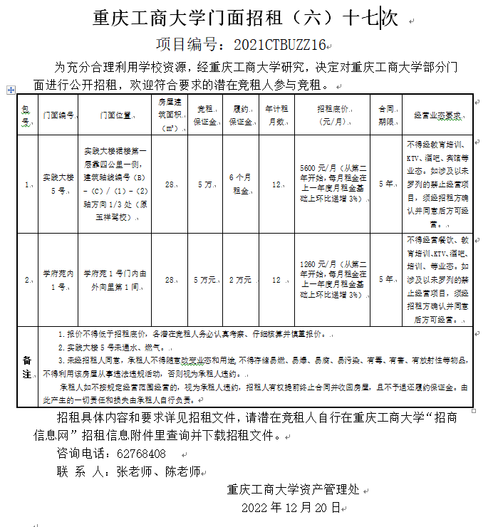 2003网站太阳集团门面招租(2022CTBUZZ03)六次结果公告