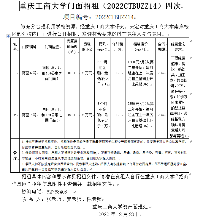 2003网站太阳集团门面招租(2022CTBUZZ14)四次