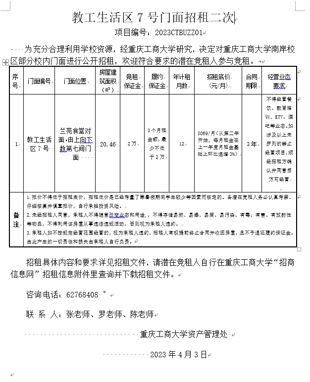 教工生活区7号门面招租(2023CTBUZZ01).docx