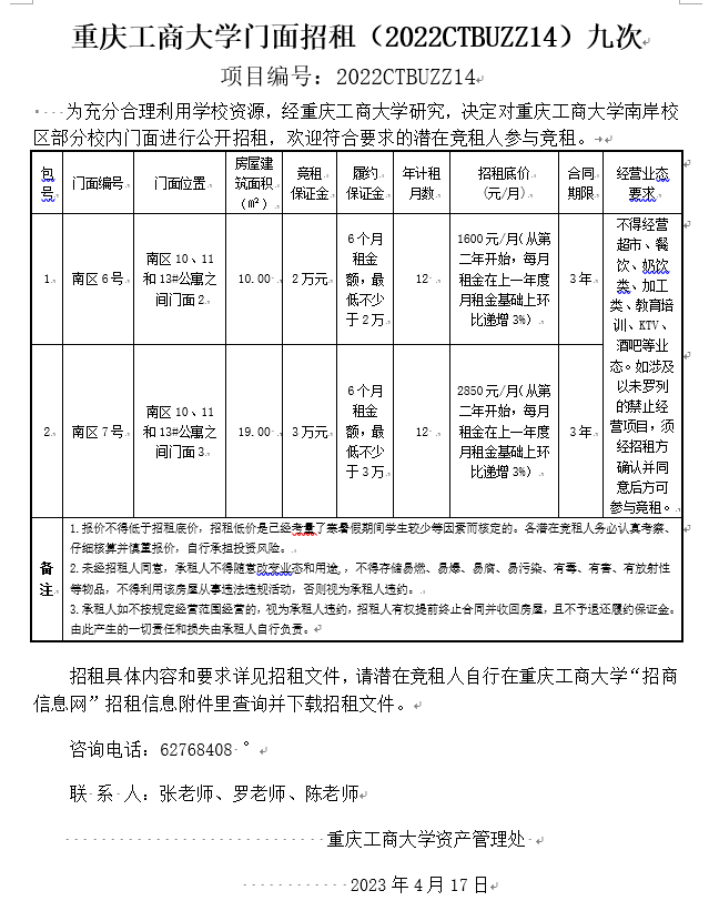 2003网站太阳集团门面招租(2022CTBUZZ14)九次