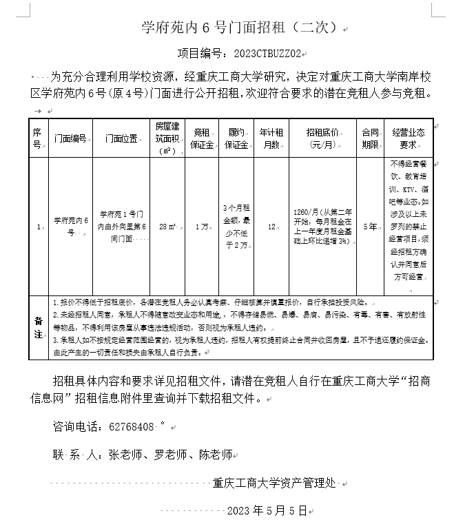学府苑内6号门面招租(二次)文件(2023CTBUZZ02).docx