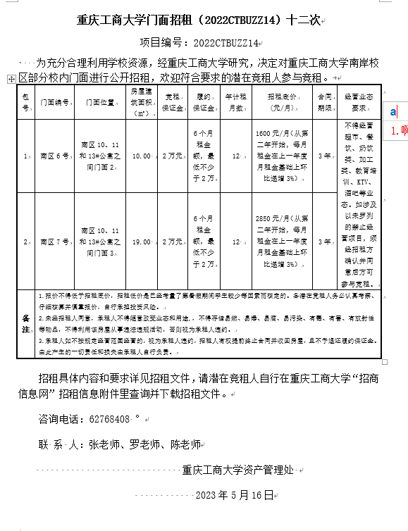 2003网站太阳集团门面招租(2022CTBUZZ14)十二次