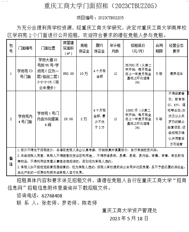 2003网站太阳集团门面招租(2023CTBUZZ05)
