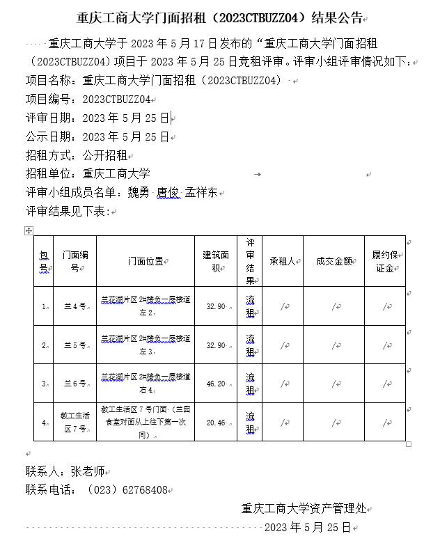 2003网站太阳集团门面招租(2023CTBUZZ04)结果公告