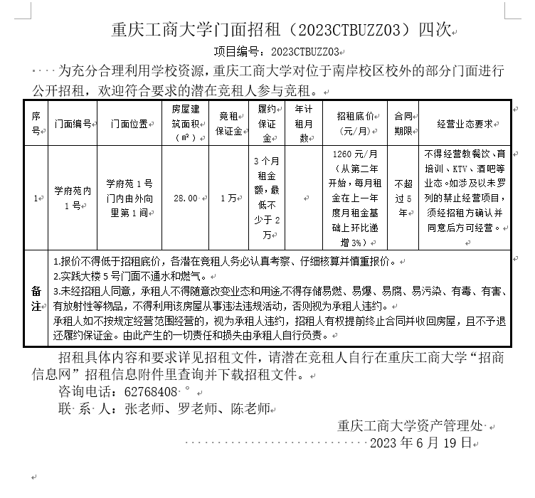 2003网站太阳集团门面招租(2023CTBUZZ03)四次