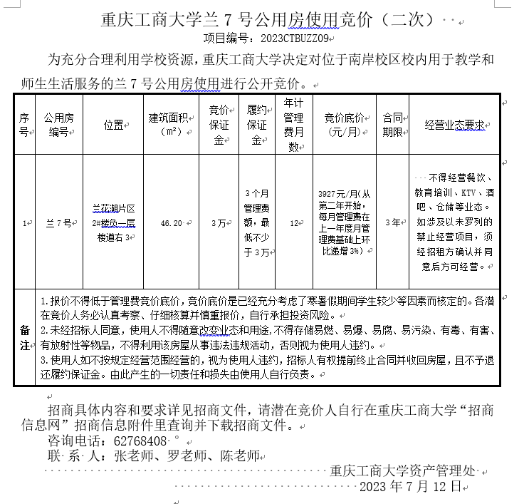 2003网站太阳集团公用房使用竞价(2023CTBUZZ04)六次