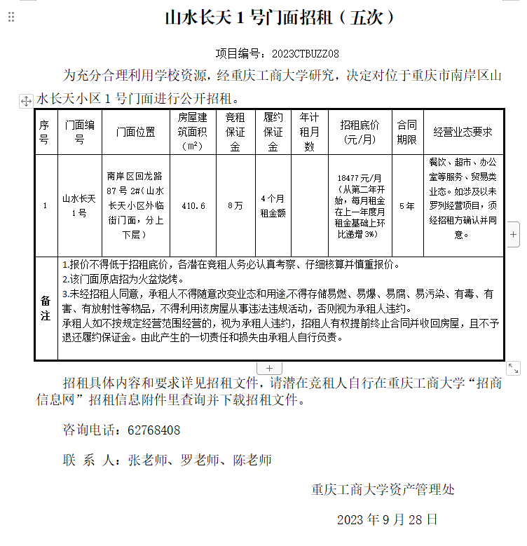 2003网站太阳集团门面招租(2023CTBUZZ03)八次