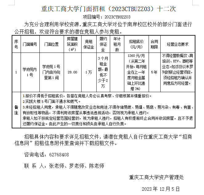 2003网站太阳集团门面招租(2023CTBUZZ03)十二次