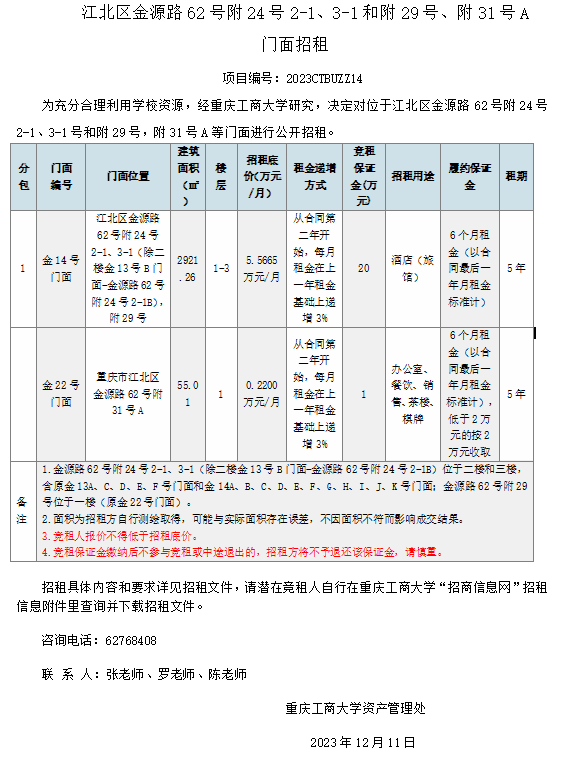 江北区金源路62号附24号2-1、3-1和附29号、附31号A门面招租公告
