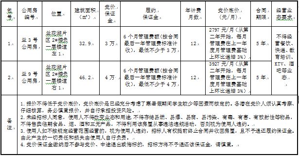 兰3号、兰9号公用房使用竞价