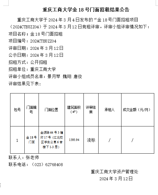 学府苑内7号面招租(22024CTBUZZ05)结果公告
