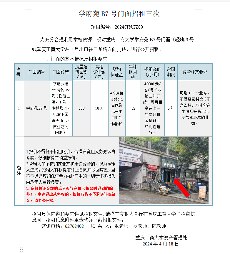 学府苑B7号门面招租三次