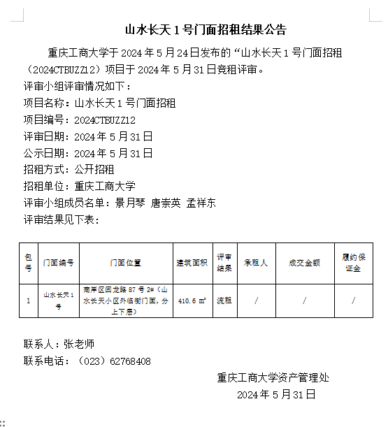 2003网站太阳集团金13号B、15号、金23号门面招租结果公告