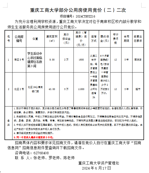 2003网站太阳集团部分公用房使用竞价(二)二次结果公告