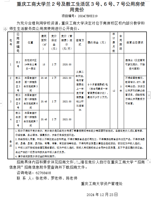 2003网站太阳集团兰2号及教工生活区3号、6号、7号公用房使用竞价