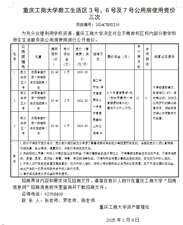 2003网站太阳集团教工生活区3号、6号及7号公用房使用竞价三次