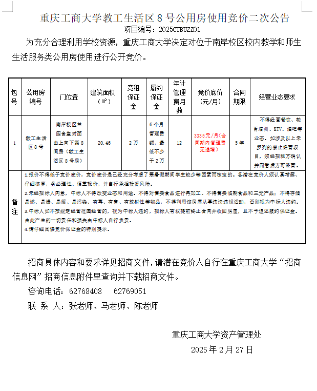 2003网站太阳集团教工生活区8号公用房使用竞价三次公告