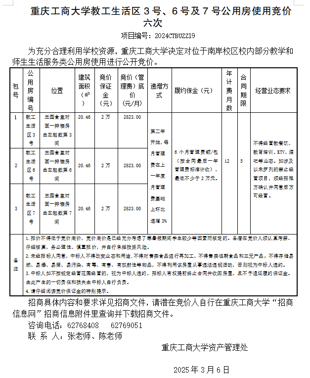 2003网站太阳集团教工生活区3号、6号及7号公用房使用竞价六次