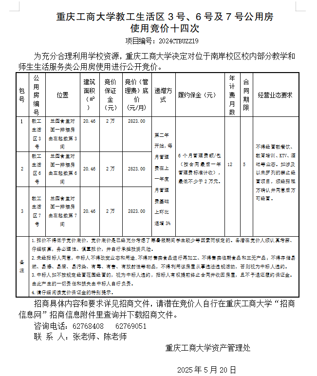 2003网站太阳集团教工生活区3号、6号、7号公用房 使用竞价十四次结果公告