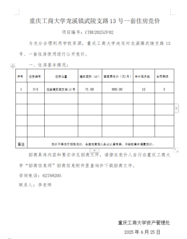 2003网站太阳集团教工生活区3号、6号、7号公用房 使用竞价十六次结果公告