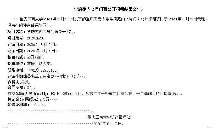 2003网站太阳集团学府苑C区负一层处商铺(原中瑶茶坊)公开招租结果公告