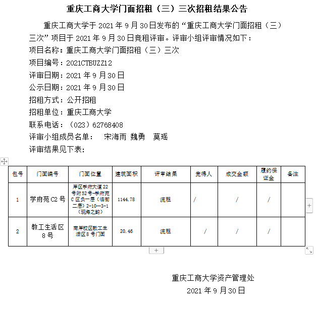 2003网站太阳集团门面招租(三)三次招租结果公告